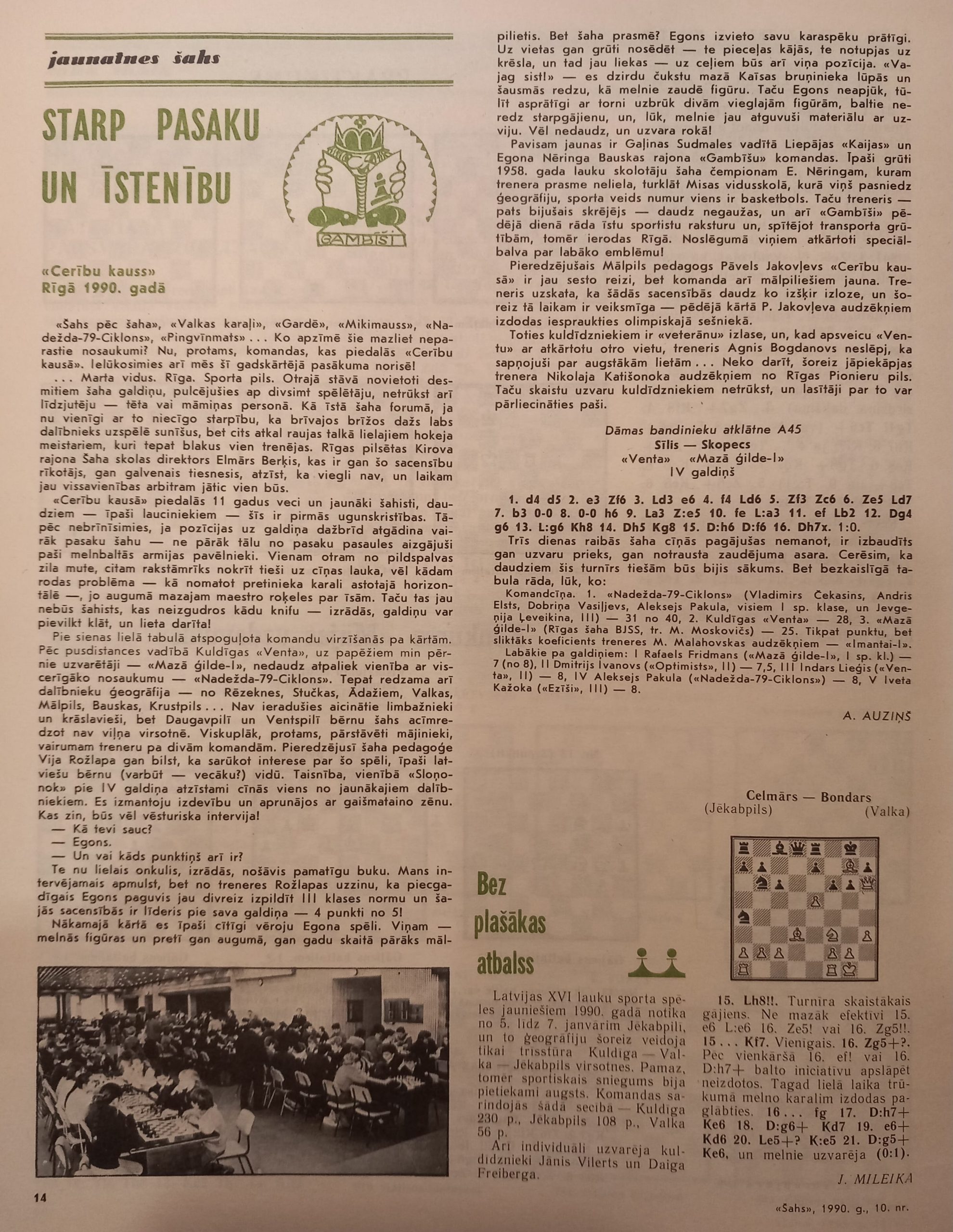 “Cerību kauss” 1990.gadā. Ar izciliem panākumiem tajā piedalījās arī šī gada sacensību galvenais tiesnesis Aleksejs Pakula. / “Šahs” 1990.g. 10.nr.