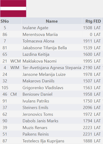 G18 Agnesa Stepania Ter-Avetisjana  G18 Melānija Luīze Jansone  U18 Reinis Paikens  U18 Iļja Kuprijans Testeļecs